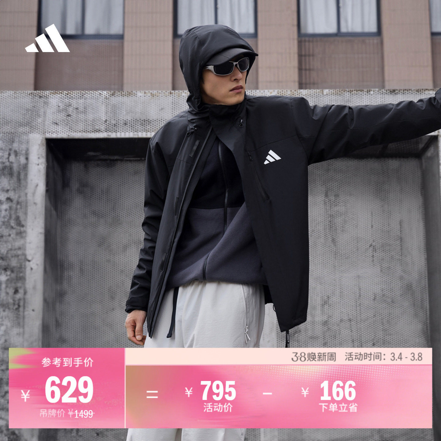 拒水保暖户外风舒适连帽夹克外套男女春季adidas阿迪达斯轻运动