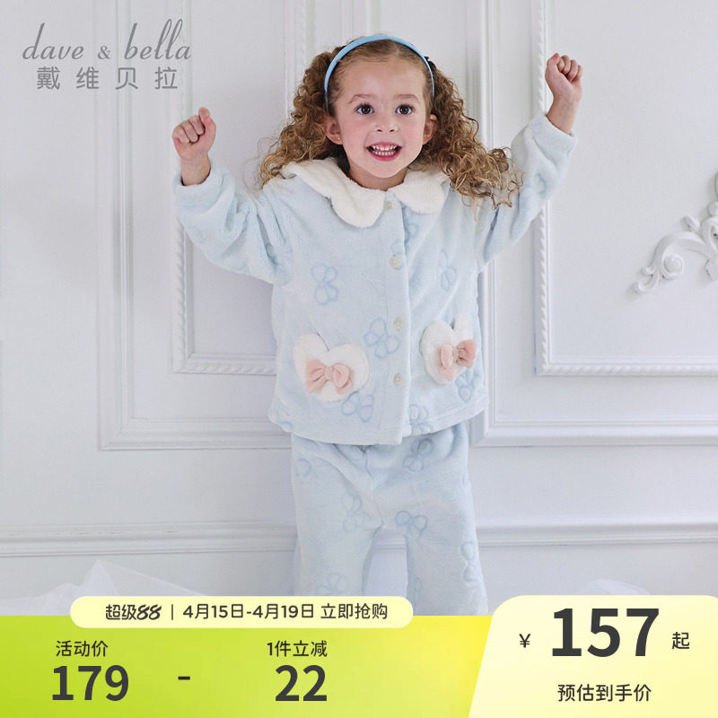戴维贝拉女童家居服套装珊瑚绒睡衣女宝冬季新款男童儿童居家保暖