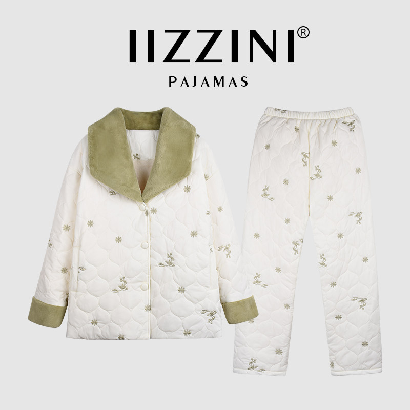 - 睡衣加厚女冬三层夹棉