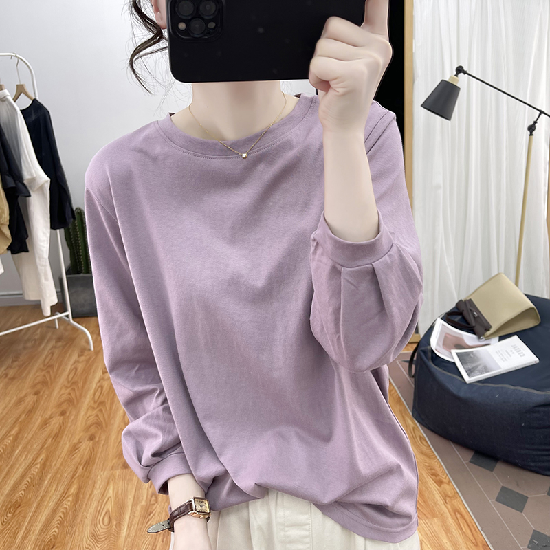 春秋季灯笼袖纯棉长袖T恤女2025新款纯色休闲宽松百搭打底衫上衣