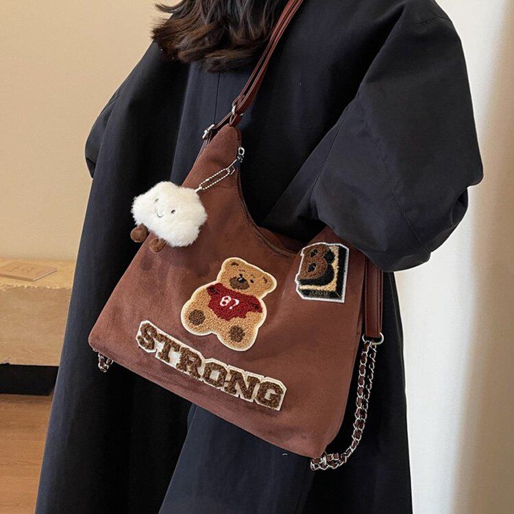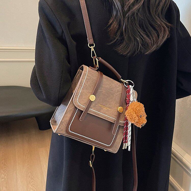 2026夏季新款搭扣牛津纺均码带挂件2024年春季黄棕色校园双肩背包