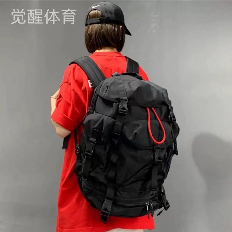 机能风双肩包男女大容量运动户外背包大学生书包黑色牛津纺多功能