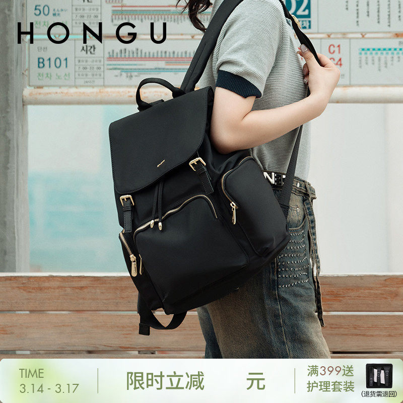 HONGU/红谷女包休闲春夏简约清新牛津纺双肩包女书包背包女双肩包