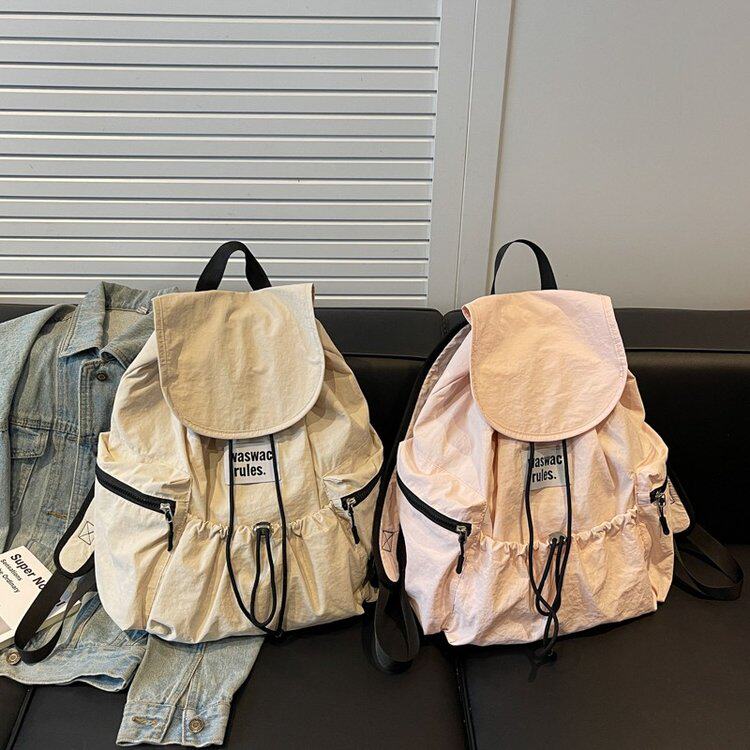 2026夏季新款牛津纺2025年春季抽带均码大学生校园双肩背包米白色