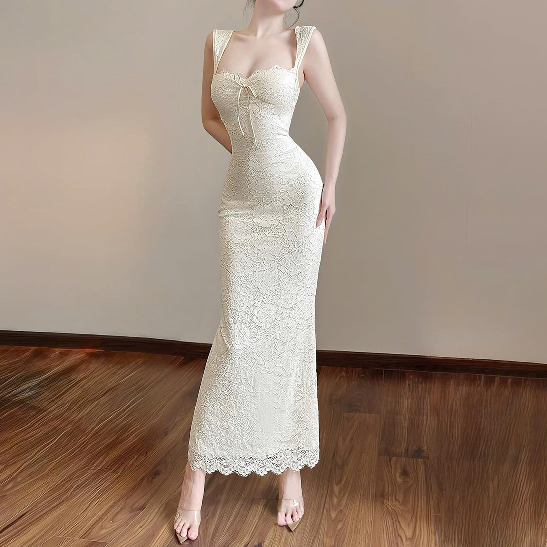 - 中长款蕾丝连衣裙