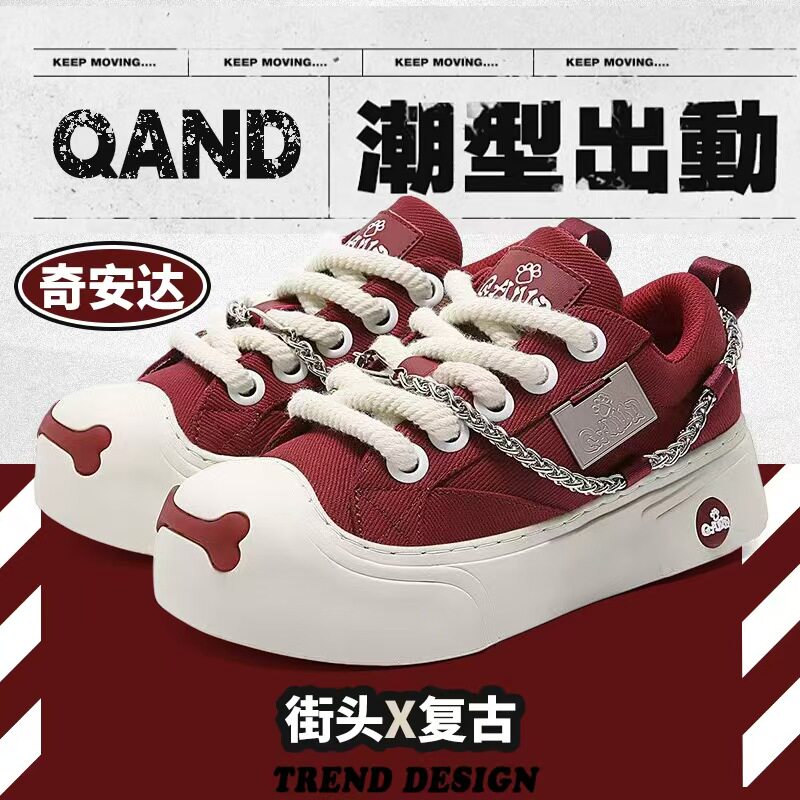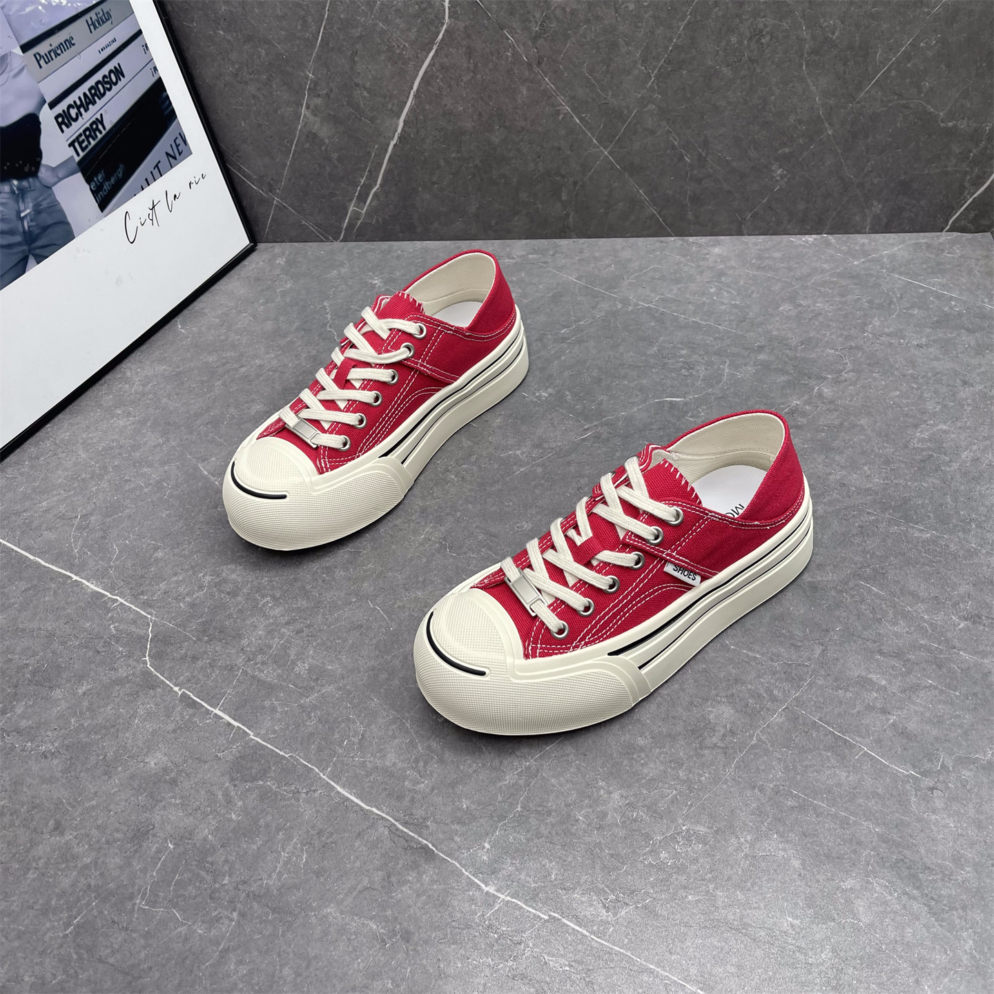 【夏之光同款】奇安达骨头鞋帆布鞋开口笑大头鞋子女厚底红色板鞋