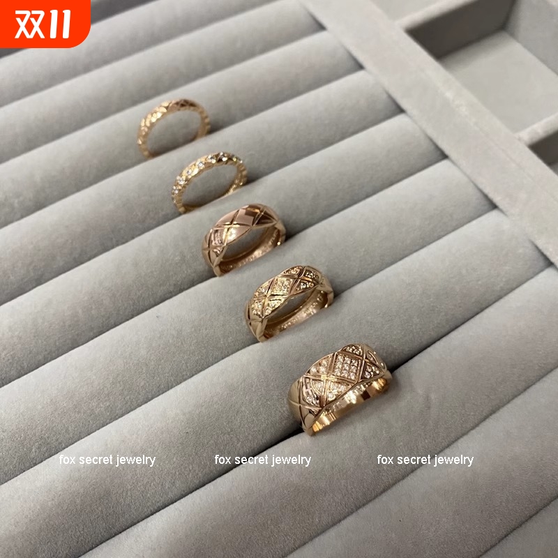 coco菱格戒指女小香风18K玫瑰金指环叠戴送女友情人节礼物高级感
