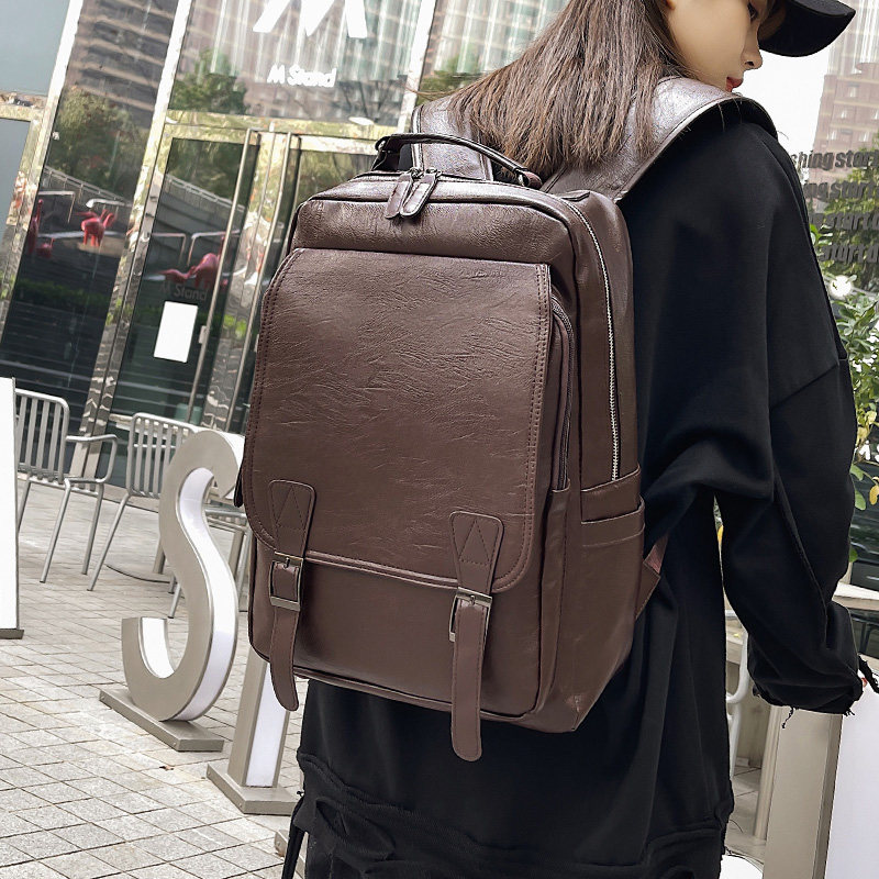 软皮双肩包男2025新款时尚大容量简约复古大学生书包女旅行背包潮