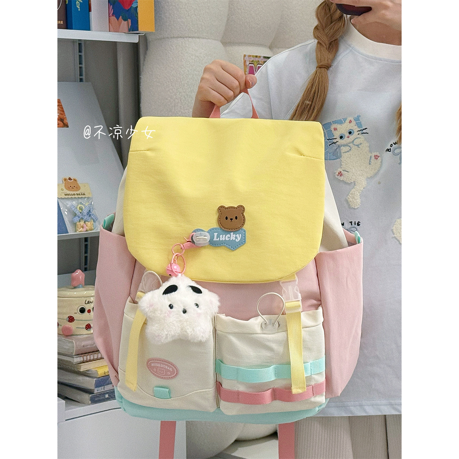 多巴胺撞色初中生书包高中学生大容量翻盖双肩包可爱少女旅行背包