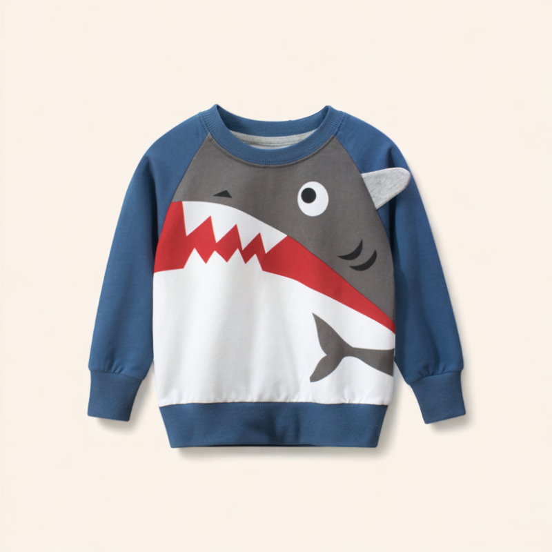 男童卡通鲨鱼卫衣春秋装儿童宝宝圆领套头长袖t恤上衣男孩打底衫