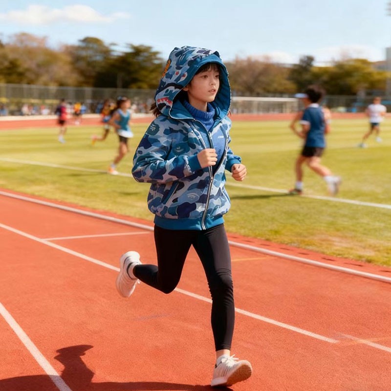 2025潮牌童装男女款鲨鱼卫衣拉链连帽衫嘻哈宽松春秋外套时尚迷彩