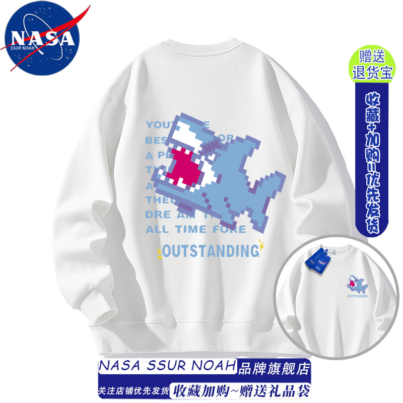NASA联名像素风涂鸦卡通鲨鱼卫衣男2025新款春秋季潮牌连帽外套女