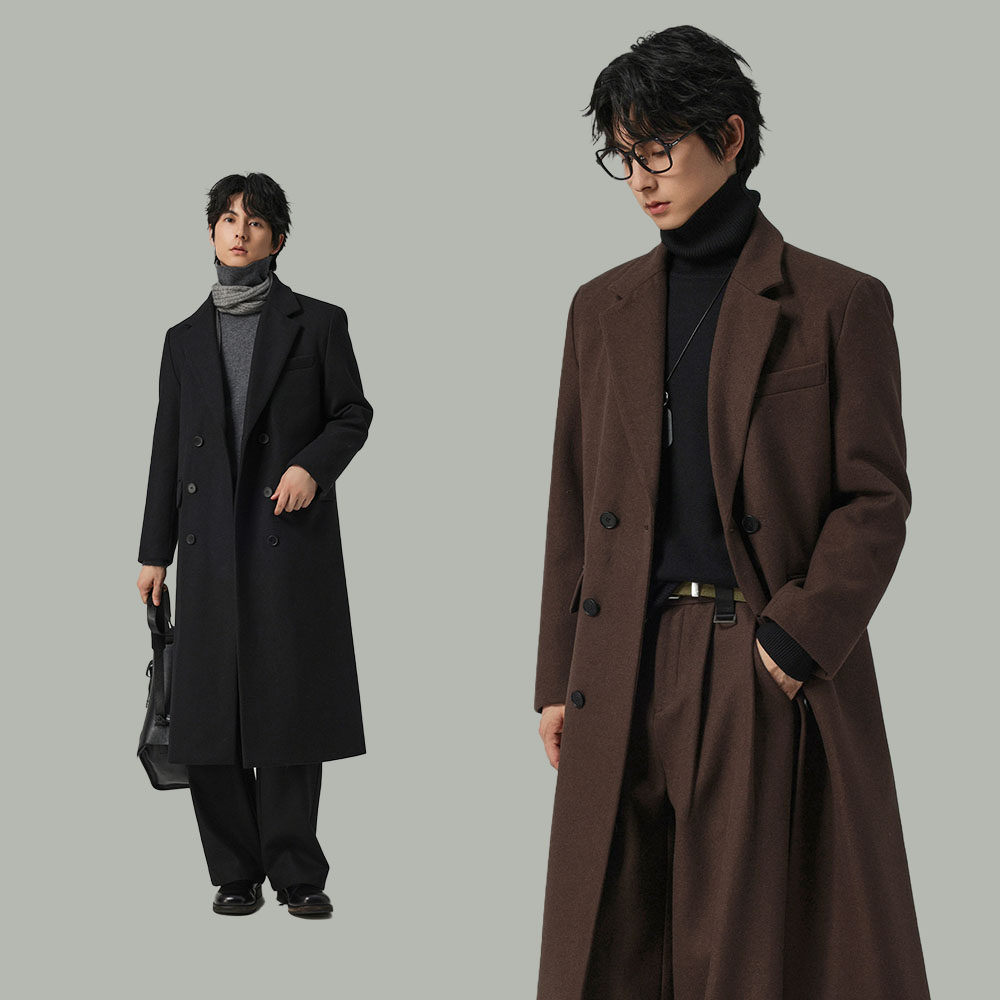 - 男毛呢加厚中长款外套