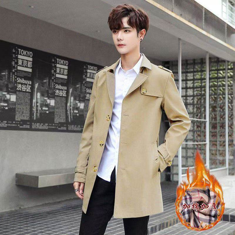 - 加绒中长款风衣男