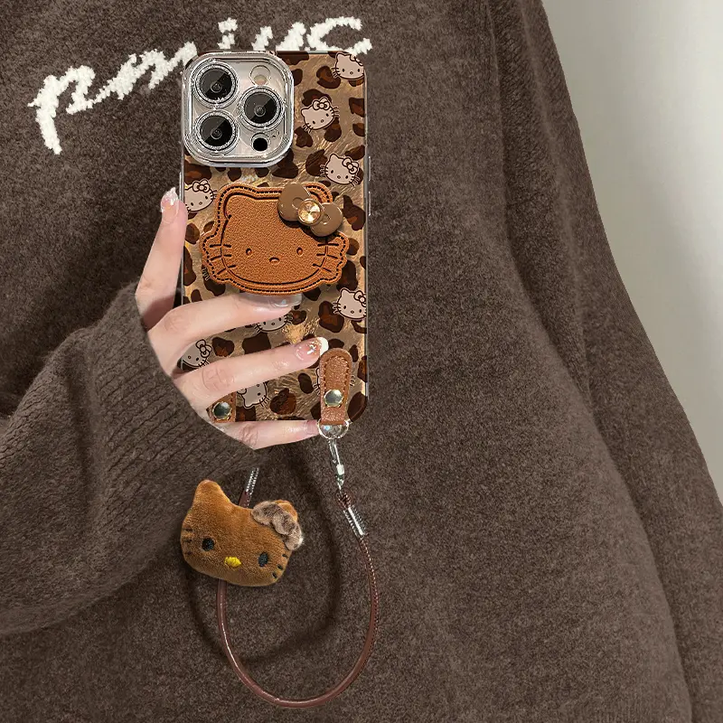 豹纹kt猫适用苹果14Promax手机壳15Plus挂绳公仔16Pro全包防摔iPhone17保护套13高级感12轻奢风11时尚爆款8/7