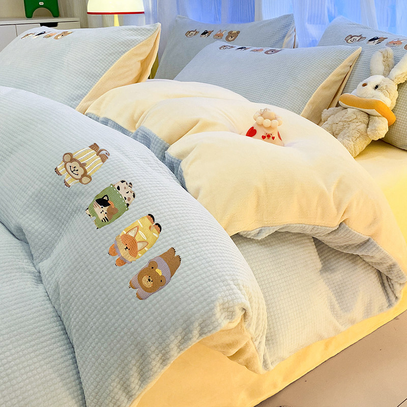 冬季牛奶绒床上四件套卡通刺绣珊瑚绒加绒保暖被套床单25新款a类