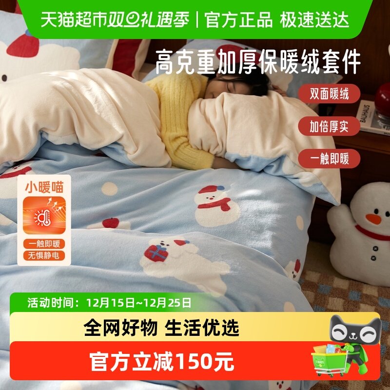 金喜鸟家纺小怪兽毛绒水貂绒冬季保暖四件套牛奶绒卡通可爱珊瑚绒