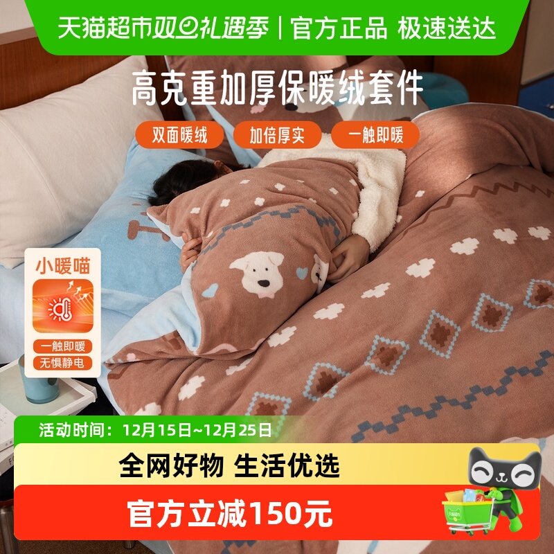 多喜爱卡通珊瑚绒四件套冬季加绒套件双人床单被罩宿舍床上三件套