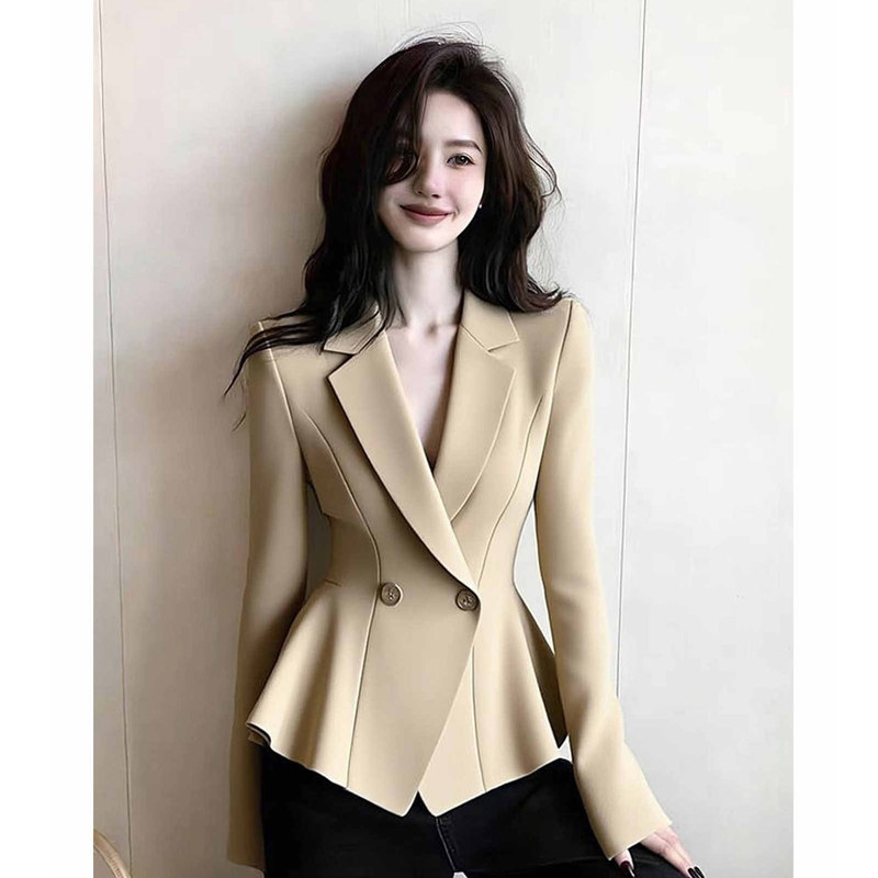 2026年早春新款法式气质通勤高级小众不撞款卡其色西装收腰外套女