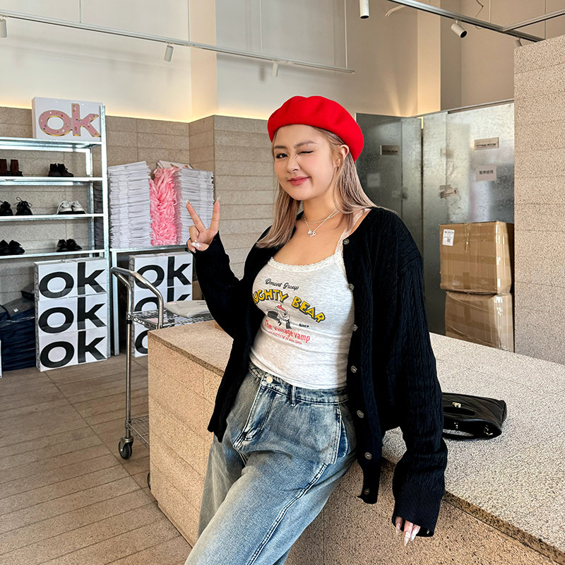 LTGIRL早春大码黑色气质宽松百搭针织开衫外套女洋气上衣薄款毛衣