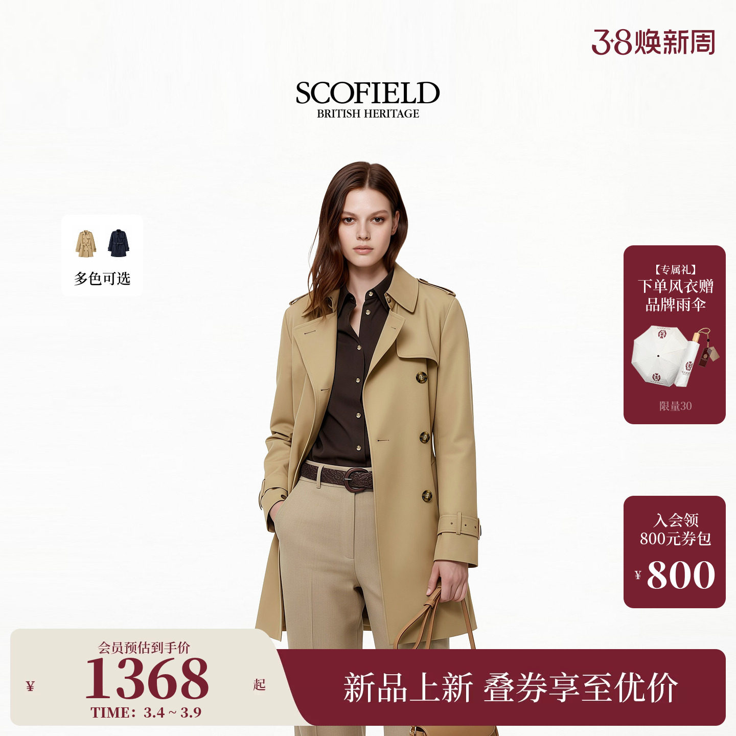 【防泼水】Scofield女装含棉双排扣风衣外套肩章袖袢2026早春新品