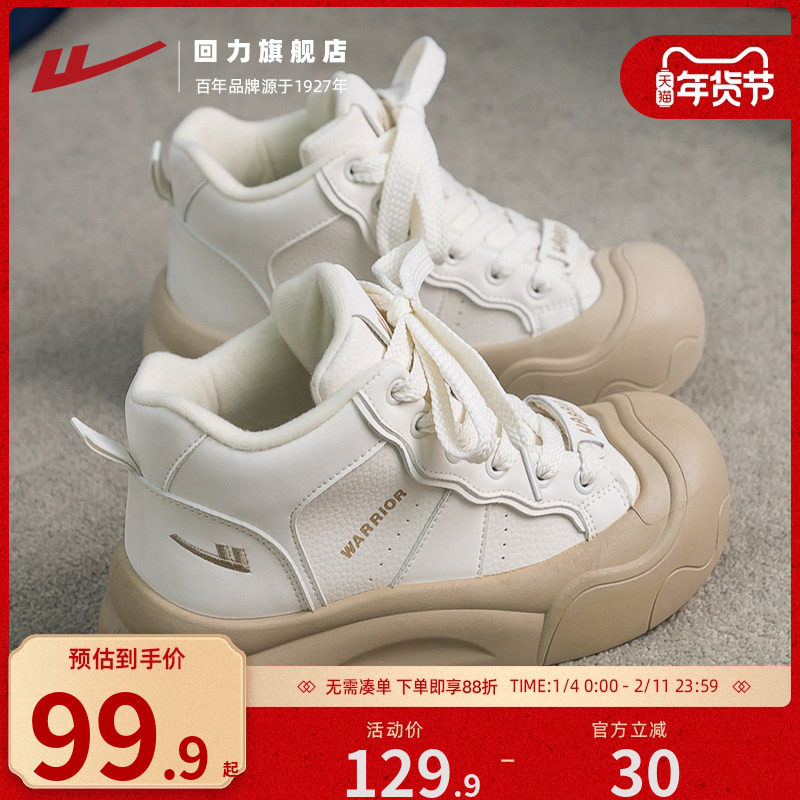 秋冬新款回力可爱高帮小白鞋女百搭软底轻便复古厚底运动板鞋国潮