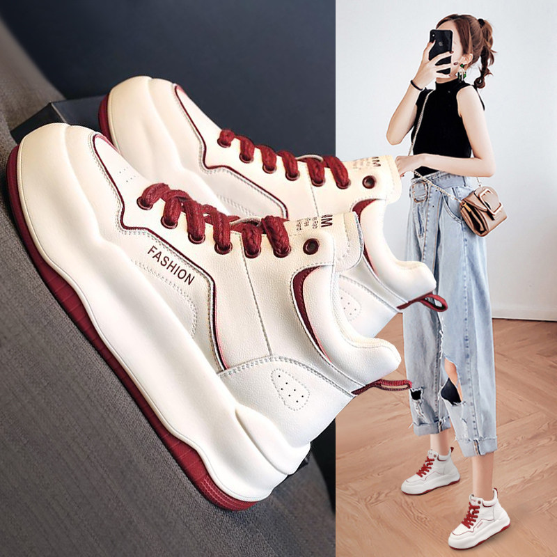 2025春夏新款真皮高帮小白鞋女ins潮流运动鞋休闲百搭厚底松糕鞋