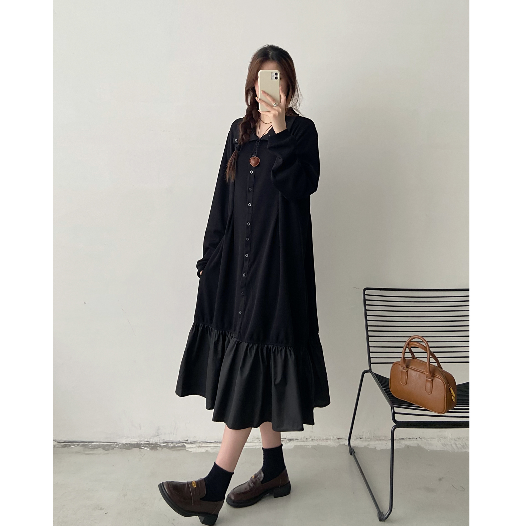 拼接polo领鱼尾连衣裙女秋冬季新款胖mm大码宽松显瘦内搭打底长裙