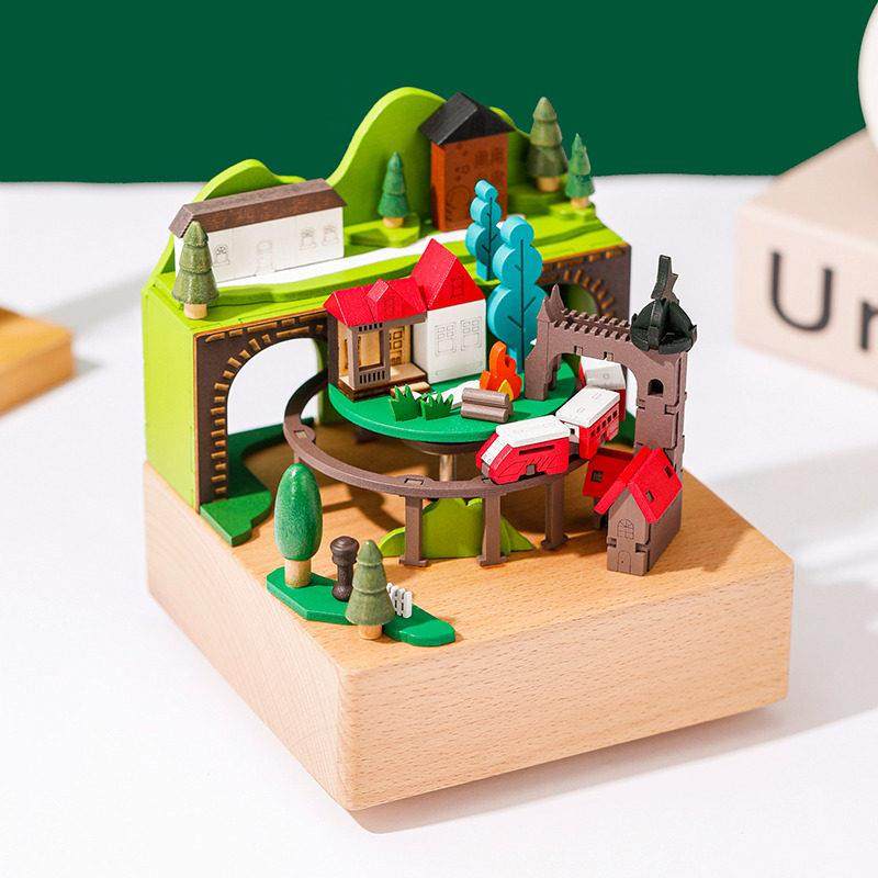 木质空中列车旋转音乐盒八音盒浪漫可爱创意女朋友生日礼品圣诞节