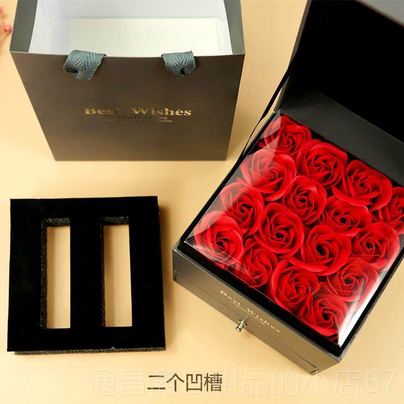 高档玫瑰诞口红礼盒空盒花礼物盒送女朋友生日礼品伴子手包圣装多