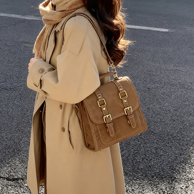 日韩风复古双肩背包女秋冬款学院风翻盖小背包立体质感手提小方包
