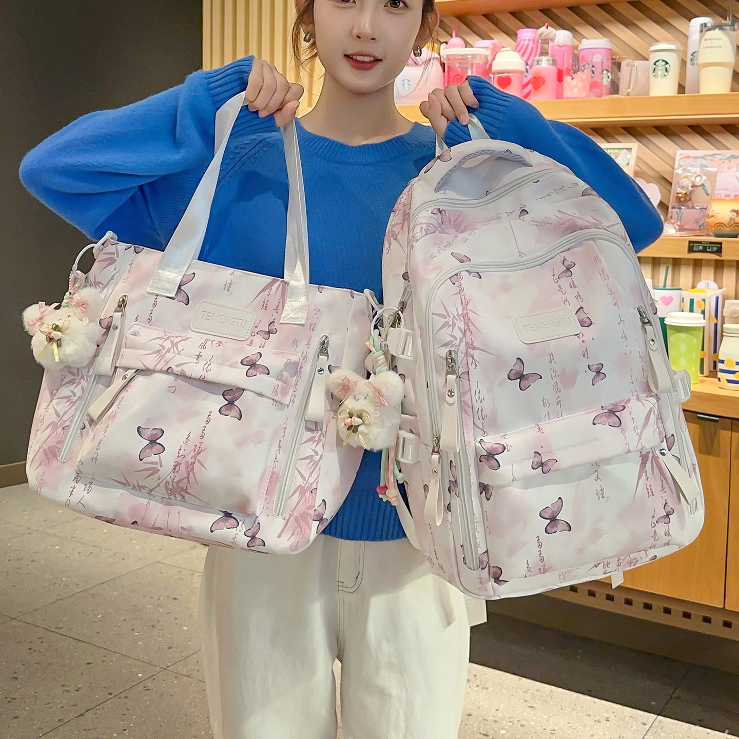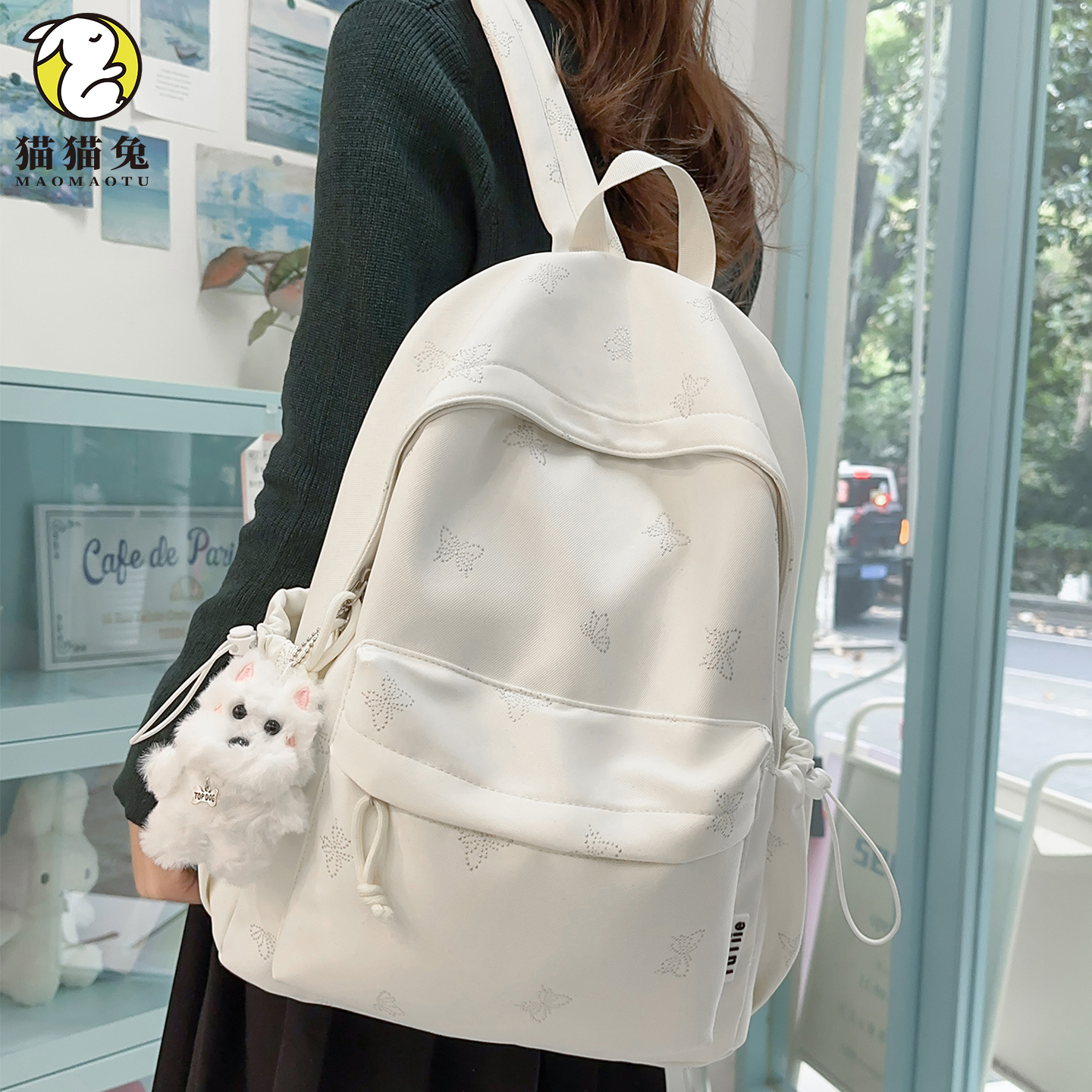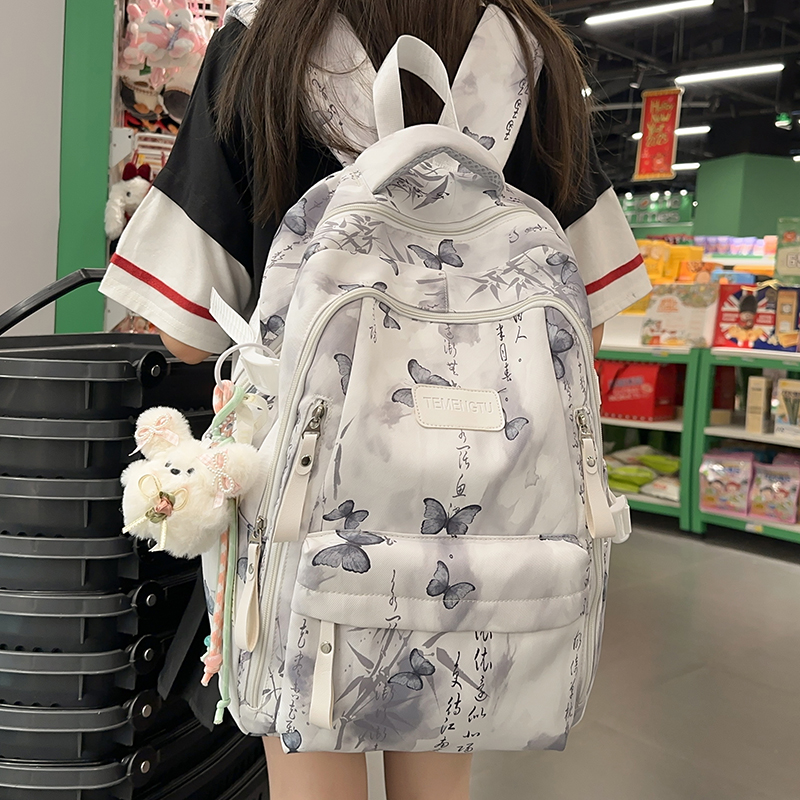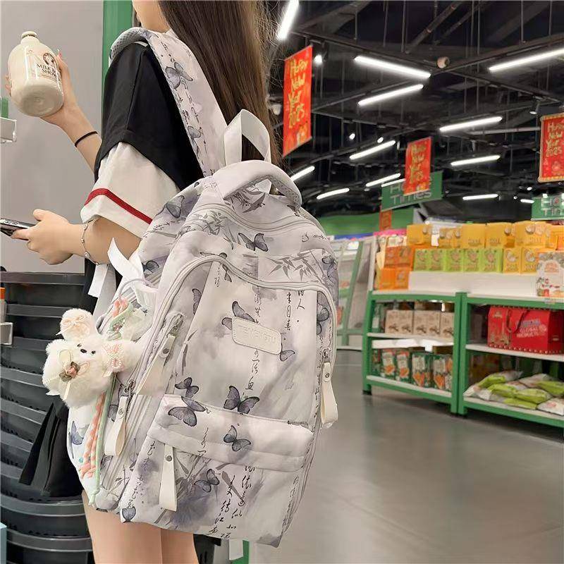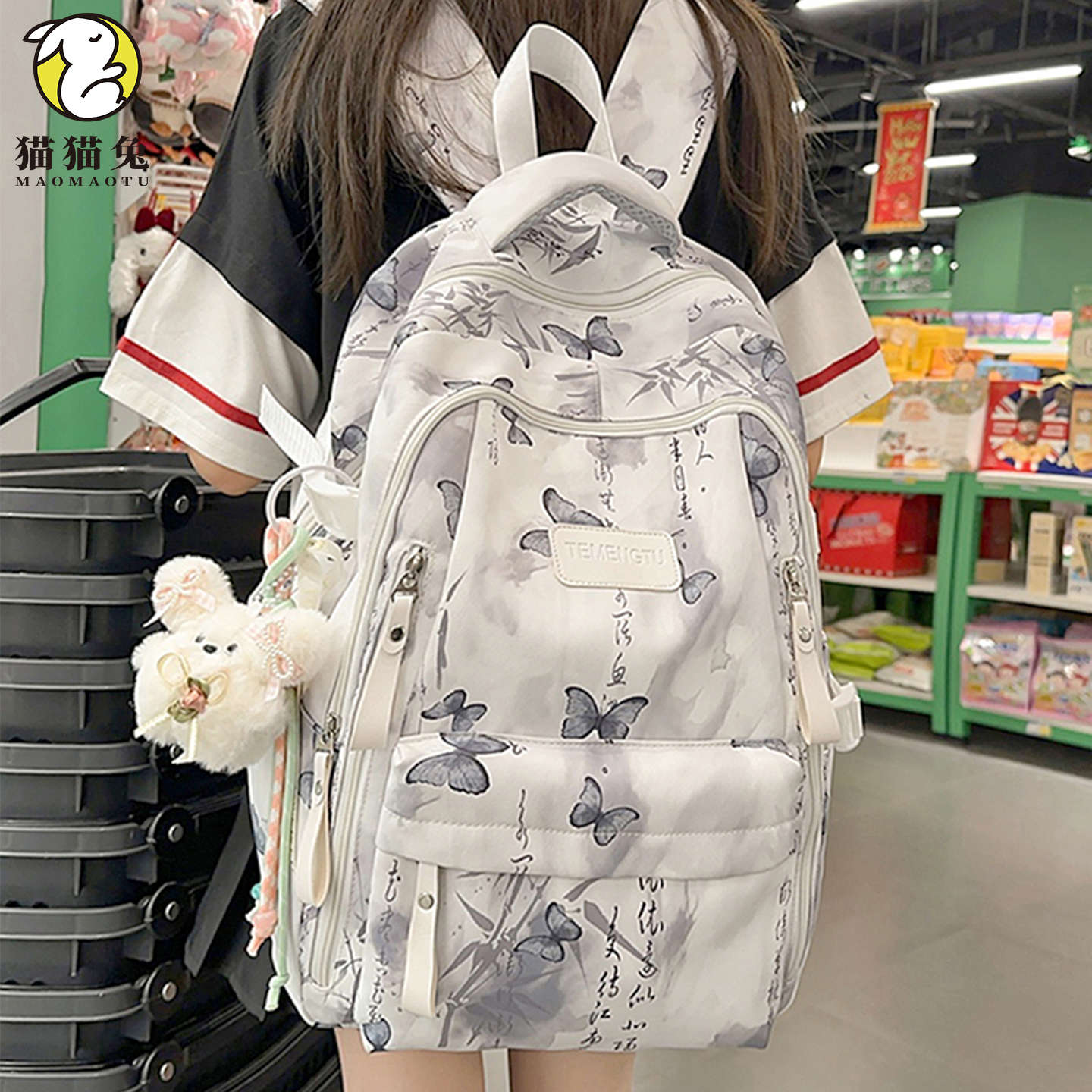 书包初中女生ins风高颜值2025新款大容量日韩风蝴蝶印花双肩包女