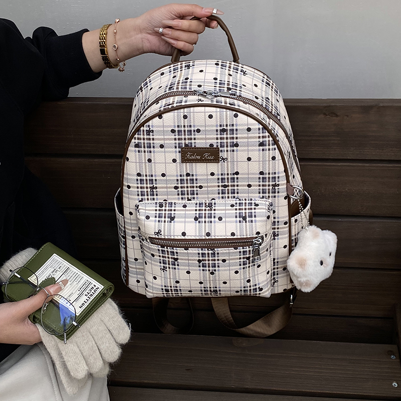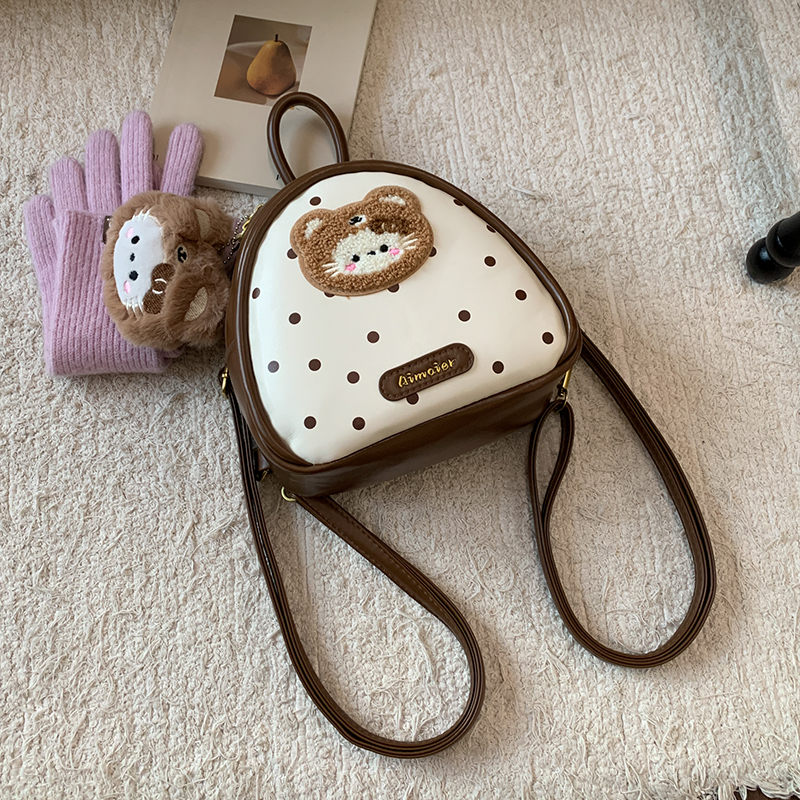 日韩风可爱小熊波点双肩包女学院风精致迷你书包女生逛街用小背包