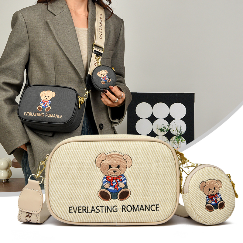 日韩风简约卡通小熊女包可爱单肩斜挎包巨好看的手机包通勤小方包