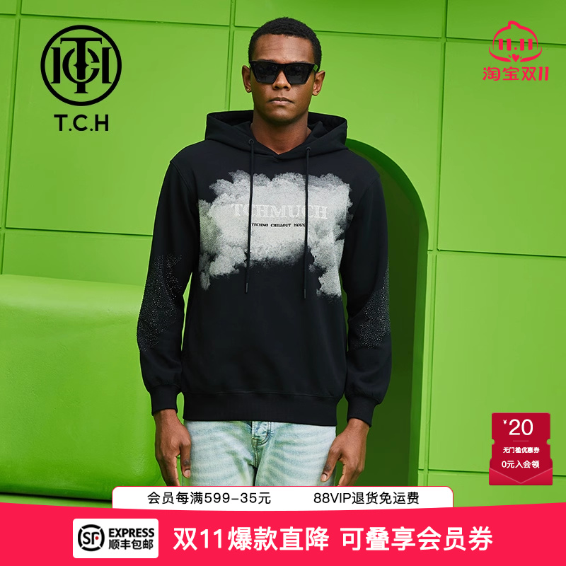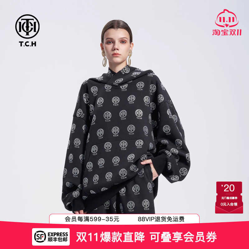 TCH美式高街烫钻满印LOGO宽松时尚连帽卫衣潮男女同款24春秋新款