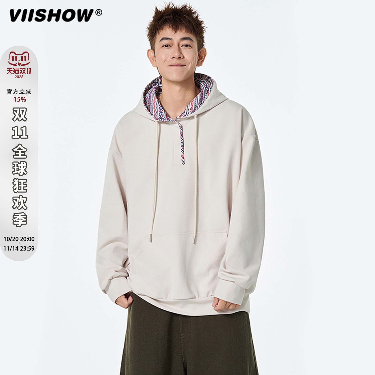 VIISHOW2025秋季新款时尚连帽卫衣男宽松百搭带兜中性款帽衫外套