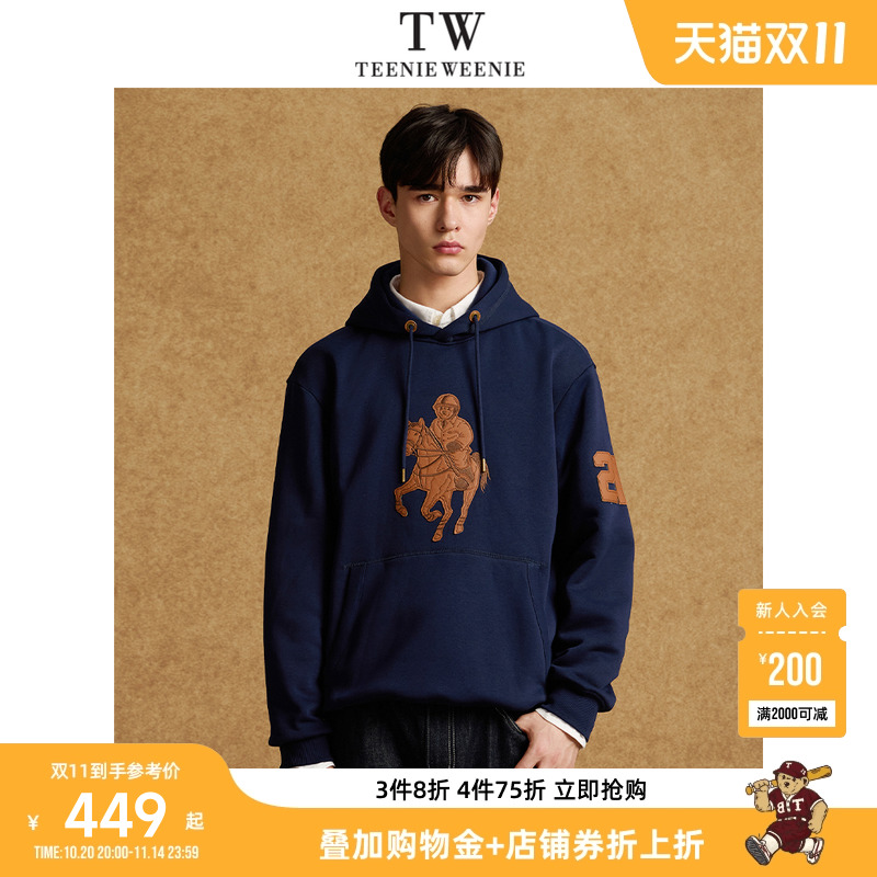 TeenieWeenie小熊男装简约时尚连帽卫衣春季潮流马术图案休闲上衣