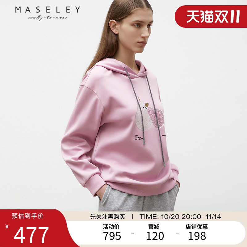 Maseley/玛塞莉甜美减龄上衣秋季新款少女心时尚连帽卫衣女