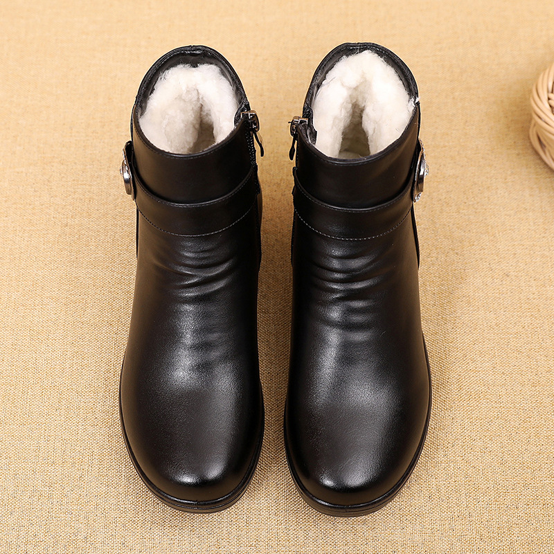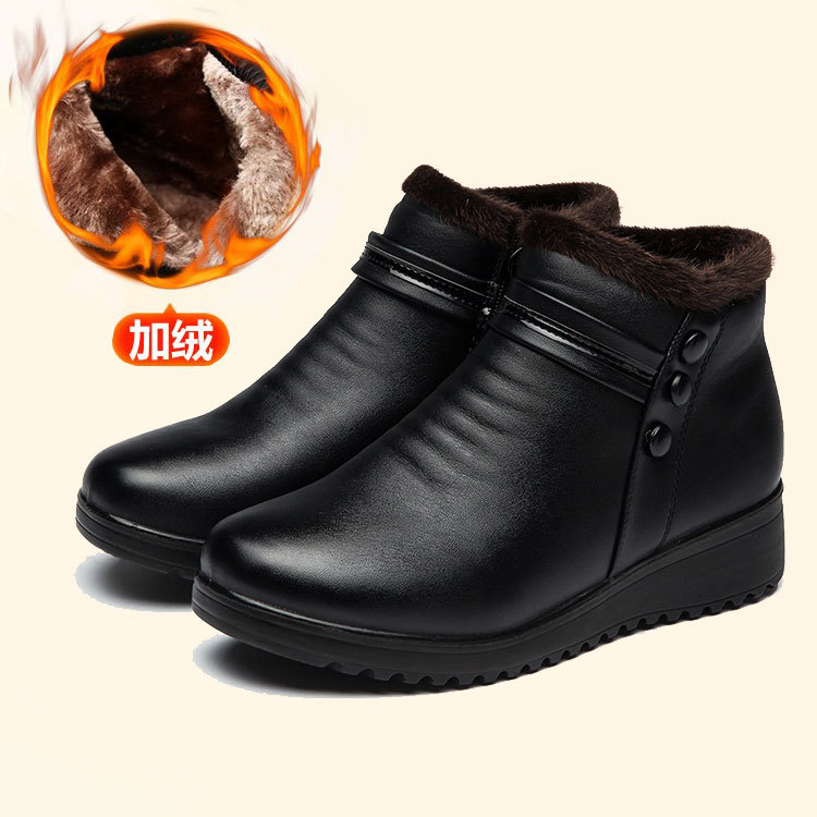 冬季女鞋棉鞋平底平跟中老年中年老人棉靴子女靴短靴妈妈鞋真皮鞋