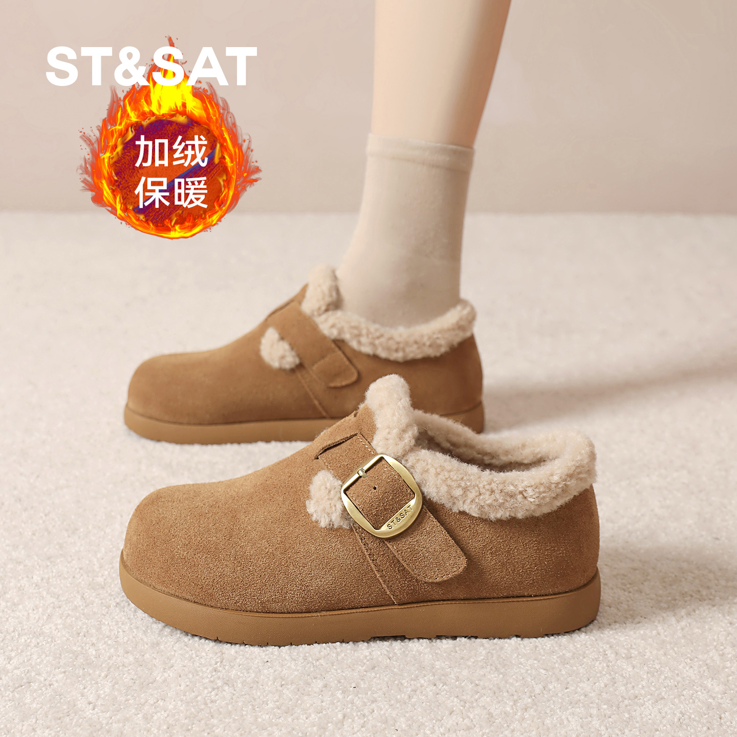 TATA他她棕色复古勃肯鞋加绒女鞋新款棉鞋毛毛平底单鞋CGW02AM5