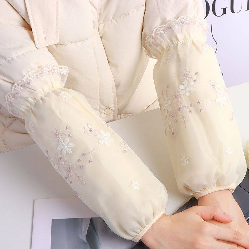韩版防水女冬季长款蕾丝袖套高档羽绒服防脏护袖办公学习家务工作