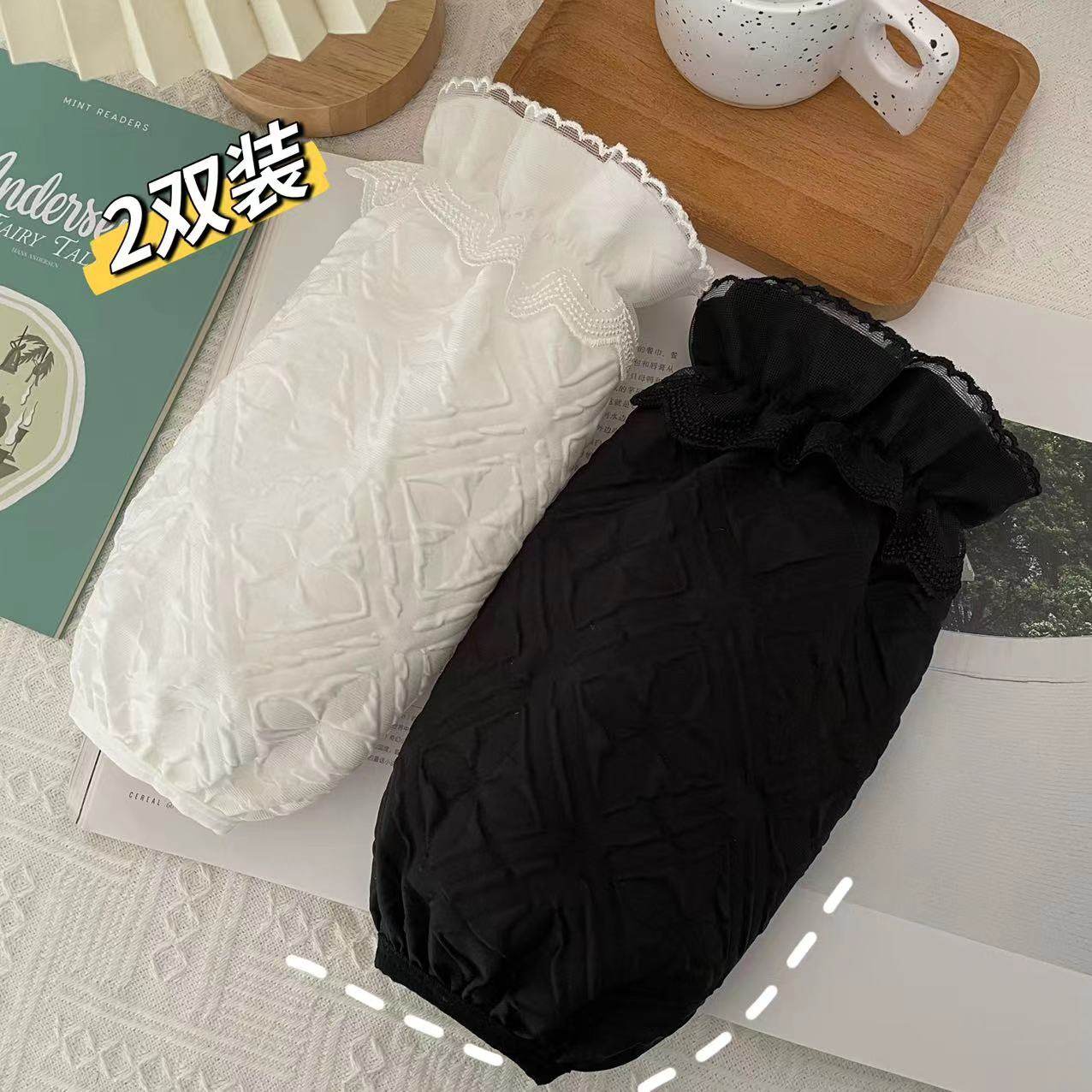 2双 少女洋气蕾丝袖套三层防污护袖冬羽绒服套袖学习工作短款米白