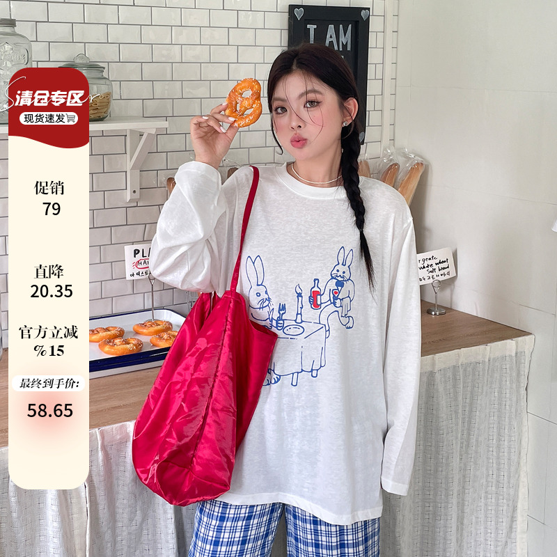 大码女装2025秋卡通动漫薄款上衣t恤胖mm显瘦宽松韩版慵懒风长袖