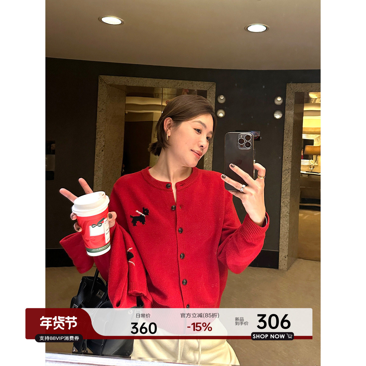 PSO Brand女装【马年限定款】假两件本命年红色毛衣开衫外套冬季