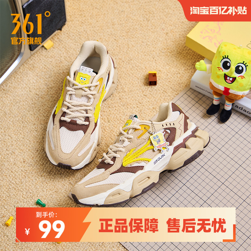 海绵宝宝361女鞋运动鞋2025秋季耐磨防滑老爹鞋复古休闲鞋子