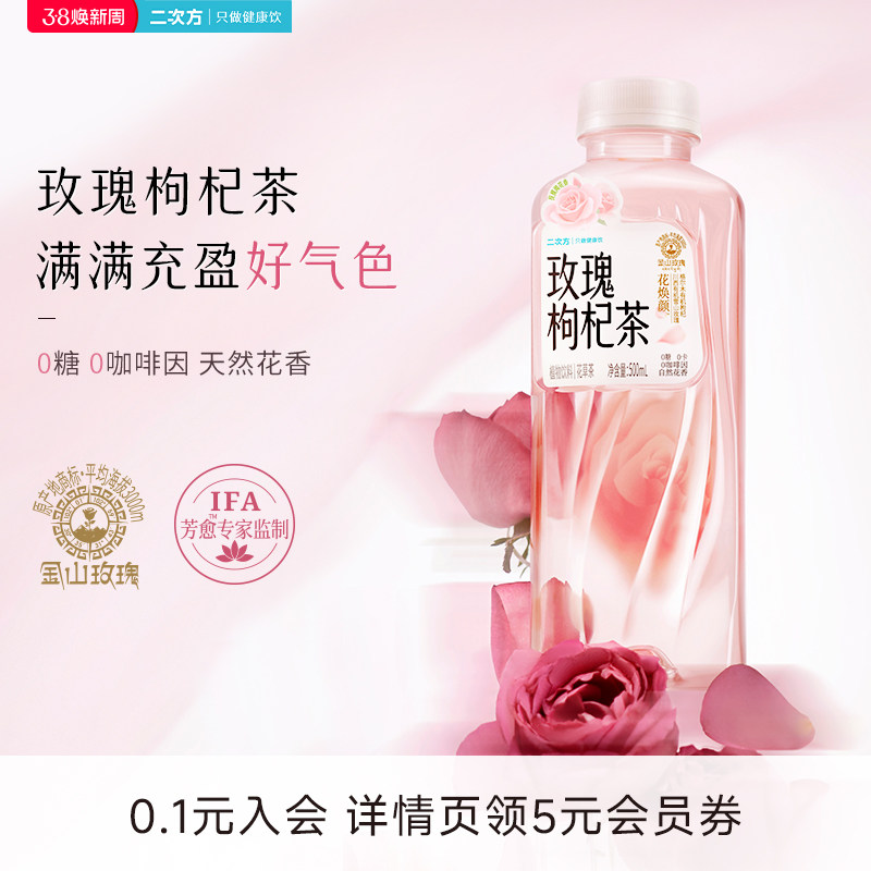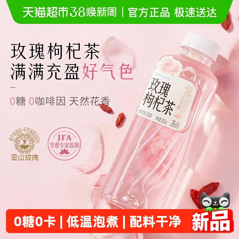 【曹颖臻选】SQUARE/二次方玫瑰枸杞茶500ml 0糖0脂0卡无糖茶饮料