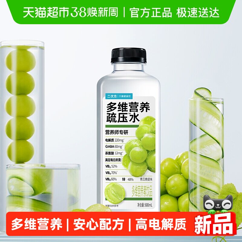 SQUARE/二次方多维营养疏压水青瓜青提味600ml 电解质维生素饮料