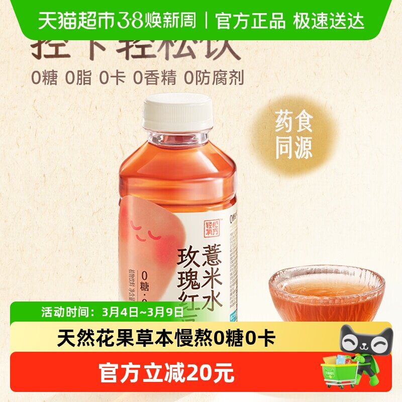 【顺手买一件】SQUARE/二次方玫瑰红豆薏米水500ml*4瓶 无糖饮料