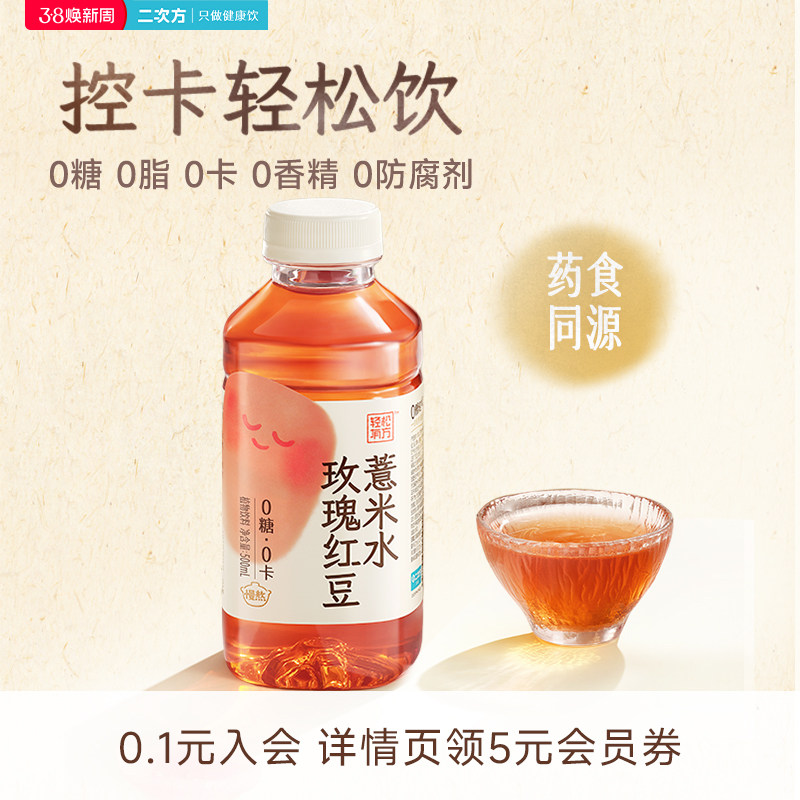 SQUARE/二次方玫瑰红豆薏米水500ml 0糖0脂0卡无糖植物饮料整箱
