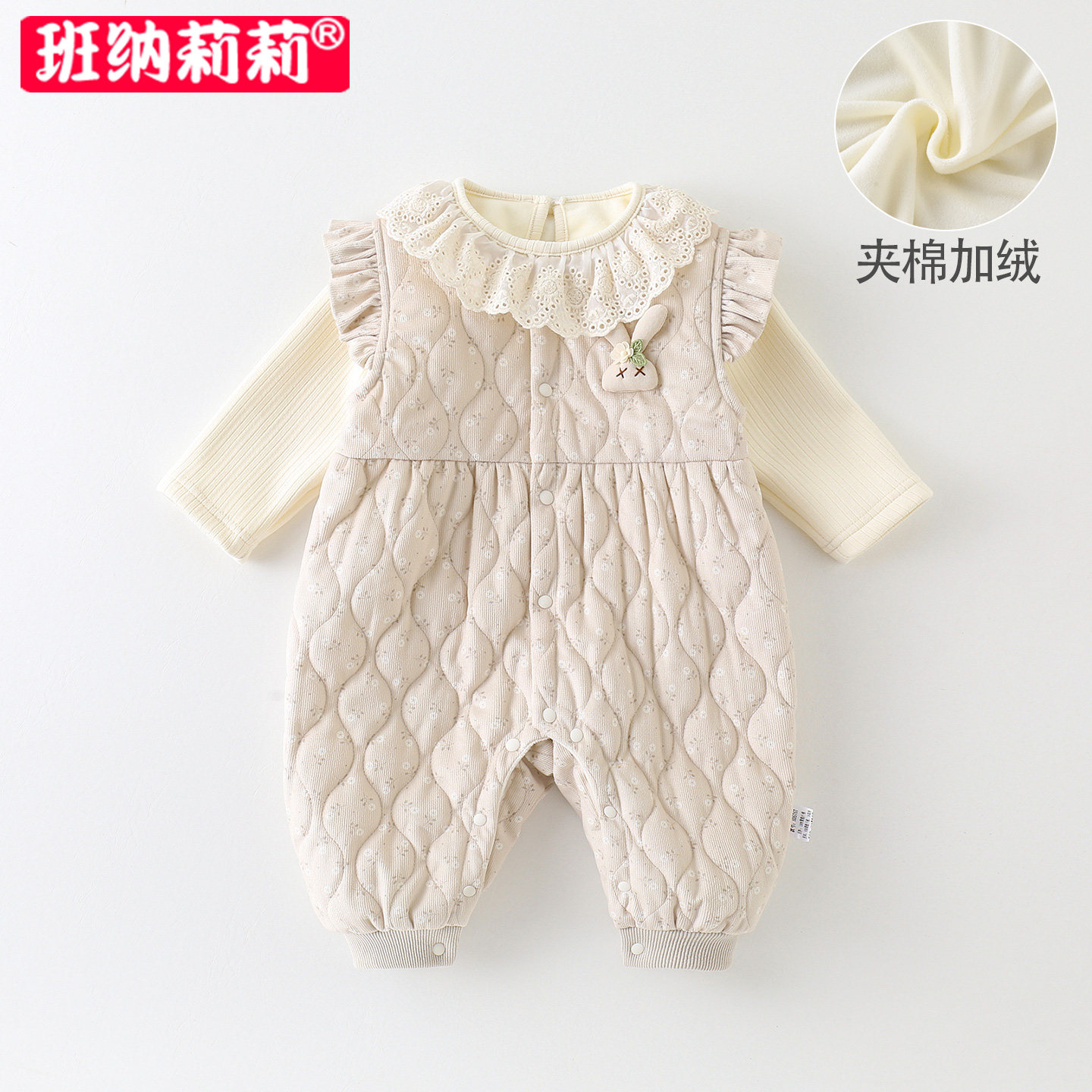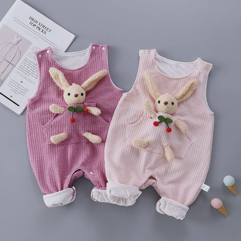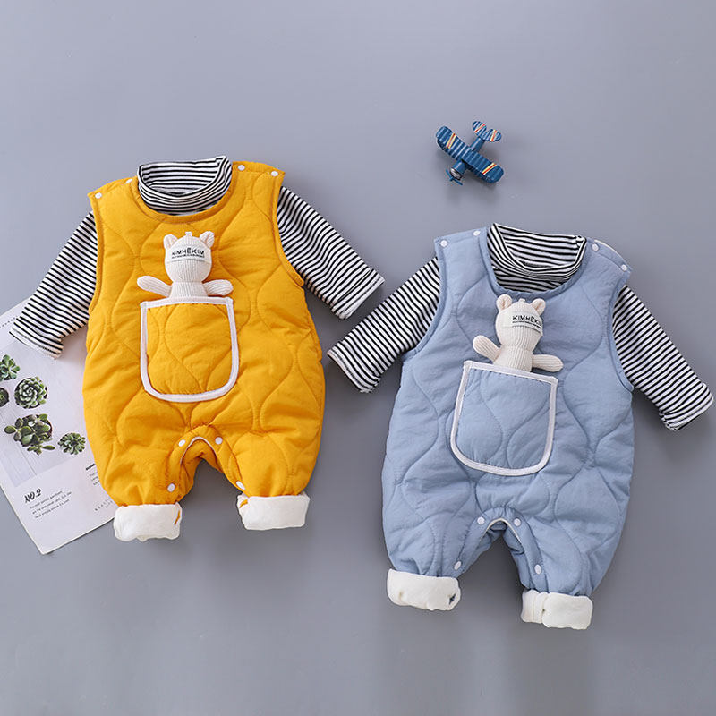 网红男女宝宝秋冬装绗棉加厚连体衣婴儿背带裤套装可爱哈衣外出服